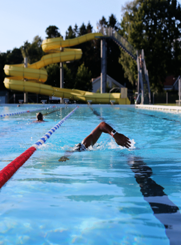 Toppa formen med ett simläger vid utomhusbassängerna på Hälleviksbadet. Anläggningen, som ligger 300 meter från campingen, har en stor bassäng (50*17,5 m) med djup från 1,20m. Mellanbassängen är 0,80 m djup och plaskbassängen är ankeldjup. Det finns en liten vattenrutschkana för de små samt en stor på 59 m, en beach volley bana, öppna gräsområden, lekplats, bastu, restaurang och glassbar.
